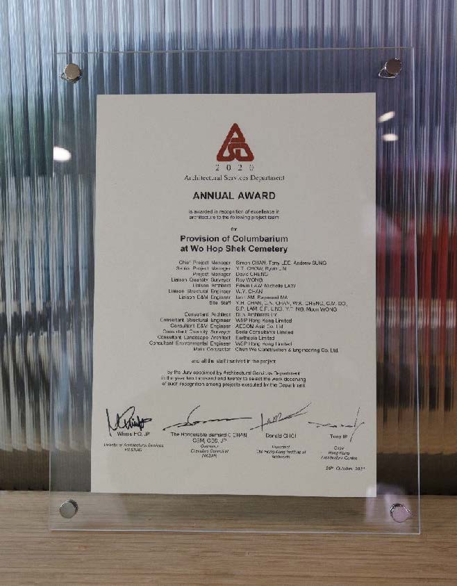 Apart from delivering the columbarium buildings on schedule, in good quality and minimize nuisance to pedestrians, users and publics during major festivals (i.e. Ching Ming and Chung Yeung) ; the project involves demolition to ex-staff quarter, development of leisure park for villagers, enhancement of pedestrian walkway, surrounding greenery improvement work etc.